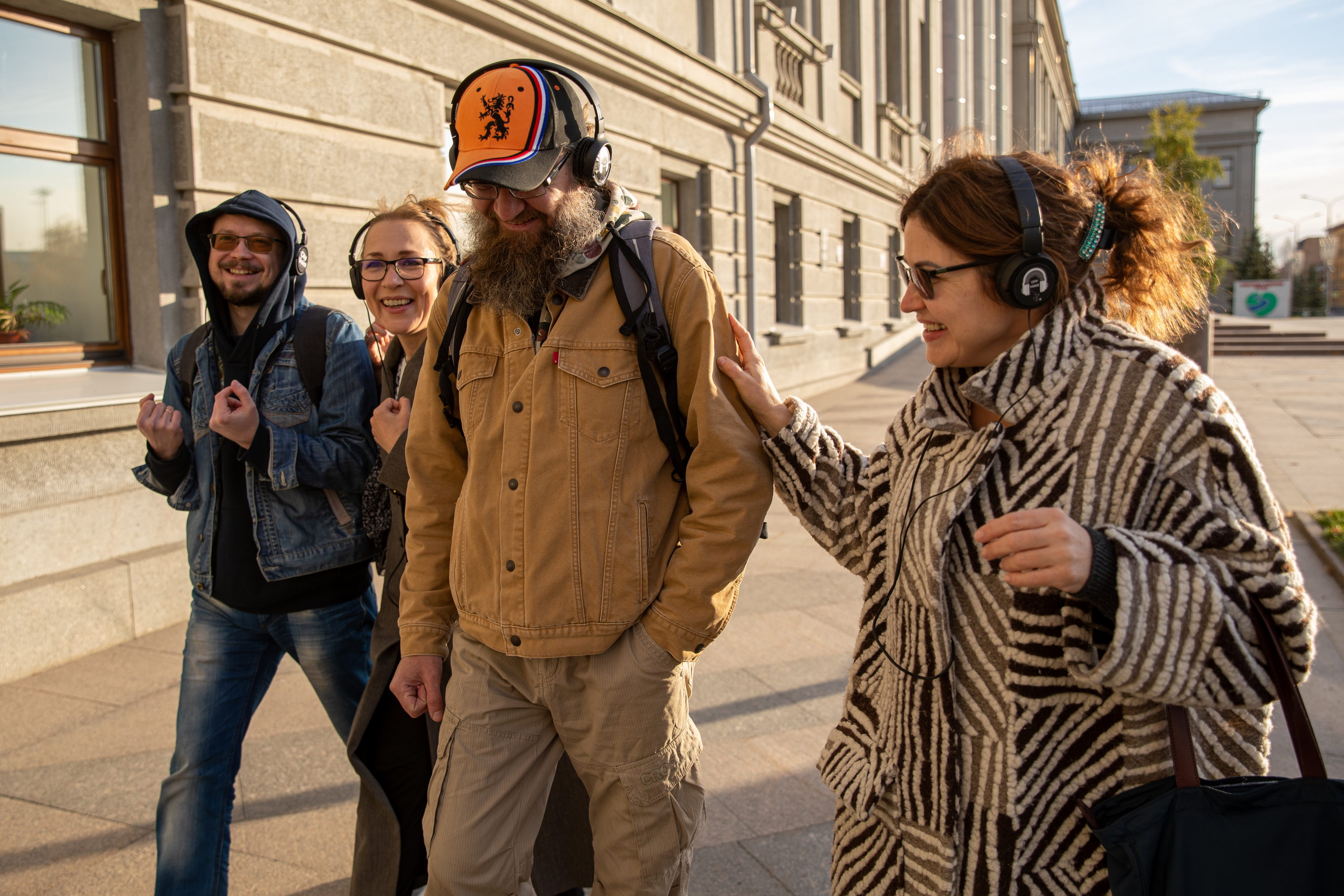 Все участники экспедиции встречаются на стартовой точке маршрута и получают от гида звуковое оборудование: наушники и ресивер.
