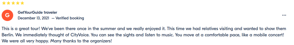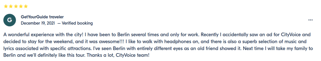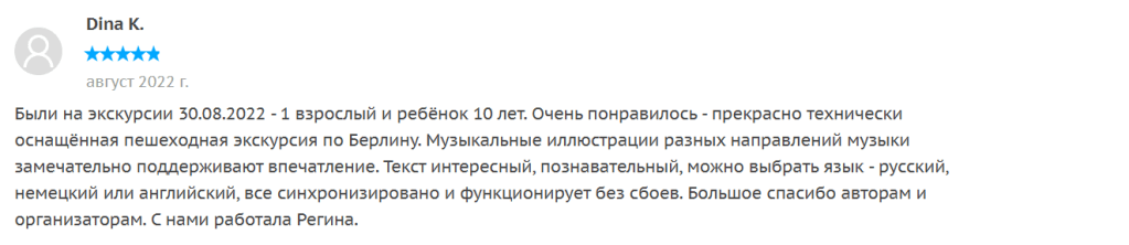 Елена: Очень понравилось, что во время экскурсии не обязательно идти рядом с экскурсоводом, а можно двигаться в своем темпе и рассматривать Берлин